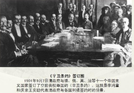 最初义和拳以"反清复明"为口号,遭到清政府的疯狂镇压。随着中国近代史形势的发展,尤其是甲午战争后列强掀起瓜分中国的狂潮,民族矛盾超越阶级矛盾成为社会主要矛盾,义和团开始支持清朝抵抗西方,口号也改为"扶清灭洋" ,后被清政府利用,借助义和团运动,慈禧太后向在华11国列强同时宣战,八国联军攻占北京城后,慈禧太后在逃跑过程中下令剿灭义和团,义和团最终在中外联合绞杀下失败。1901年,清政府被迫同八国及比利时、荷兰、西班牙等11国签订了丧权辱国的《辛丑条约》。