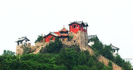 龙门关介绍:龙门关形若龙门故名之。它建在一高耸似龙头的巨石之上,四壁几近垂直,只有一道笔直陡峭的八十级台阶天梯可达龙头寨山门。两侧碉楼箭跺森然,形势险要,易守难攻。在整个猊峰城的防御体系中,既为前哨又为前防。大敌当前时,先点燃烽火通报龙台,待敌深入又可与龙台形成夹击之势。 寨内平地战时厉兵秣马,闲时休养生息。