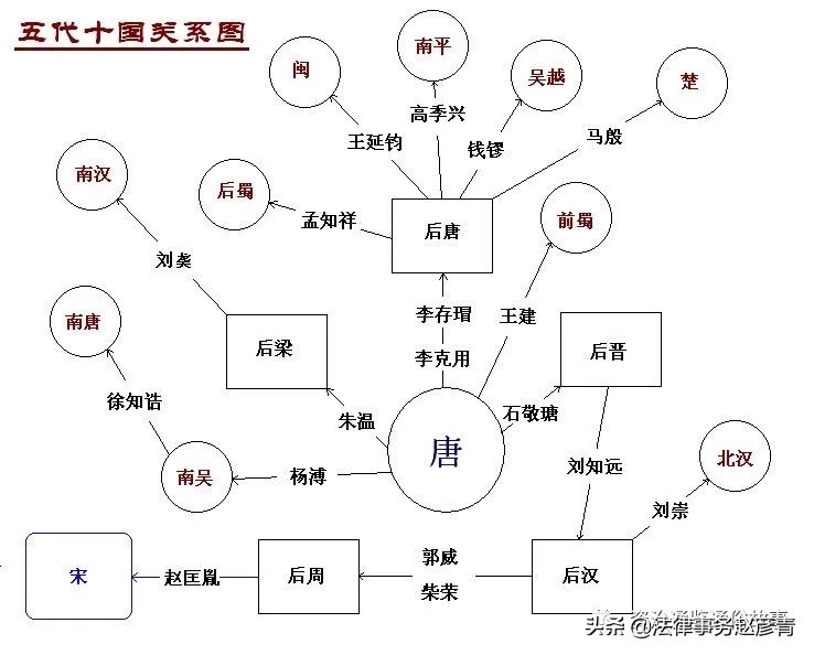 五代十国(907 年 - 979 年),是中国历史上一段大分裂时期,上承唐代,下启宋代 。这一时期,中原地区先后出现后梁、后唐、后晋、后汉和后周五个政权,史称 “五代”;与此同时,在南方及河东地区,还存在着十个主要的割据政权,被合称为 “十国”,分别是前蜀、后蜀、南吴、南唐、吴越、闽国、南楚、南汉、南平、北汉。