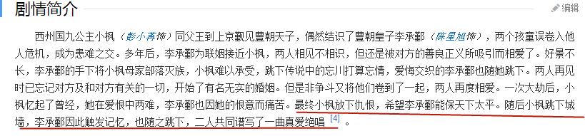 但是,在百度上搜到的简介是说两人双双跳下城墙,共谱一曲真爱绝唱。
