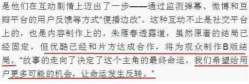 据悉,制作方还做了双结局,一方面希望能够满足原著粉的需要,一方面又尽可能地吸引更广阔的受众人群。