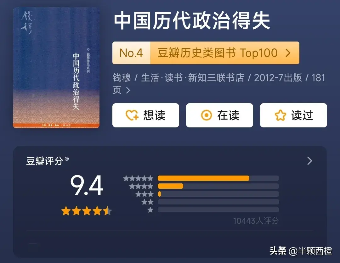 豆瓣排名前10名的历史类图书,每本都值得反复阅读!