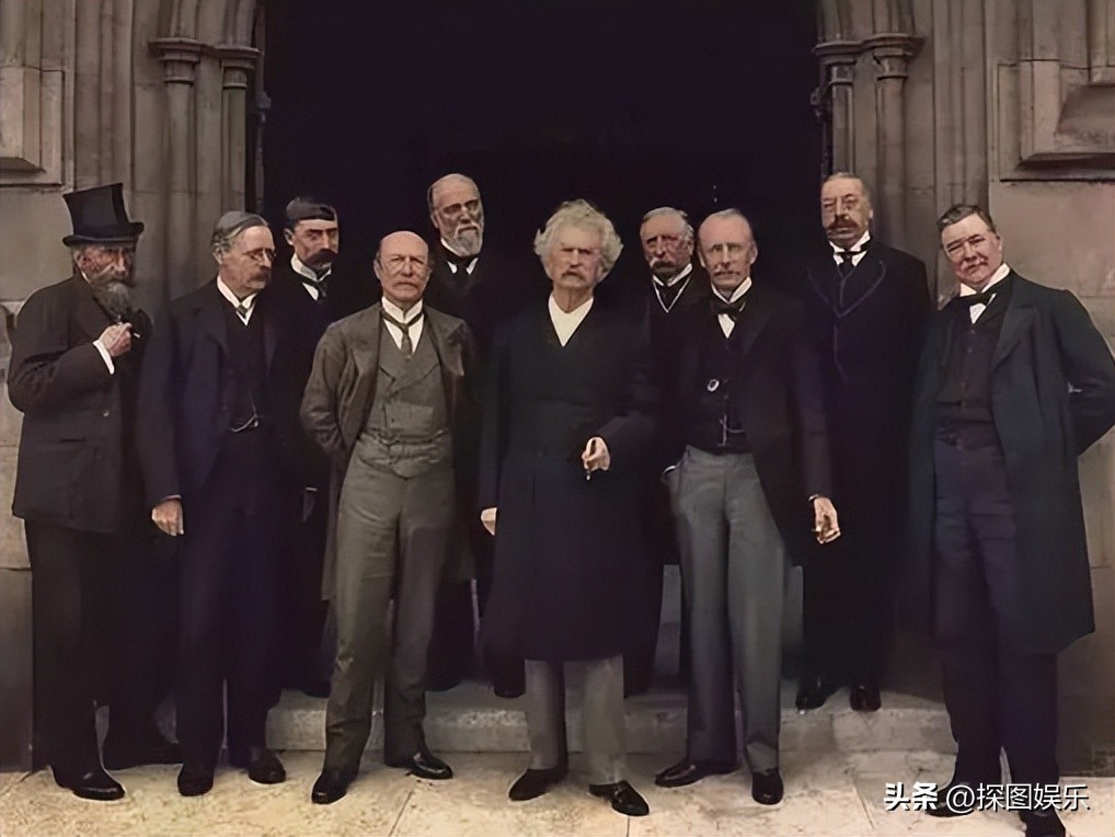 15.这张照片是马克·吐温于1907年访问伦敦议会大厦时留下的纪念影像,中间那位就是他。