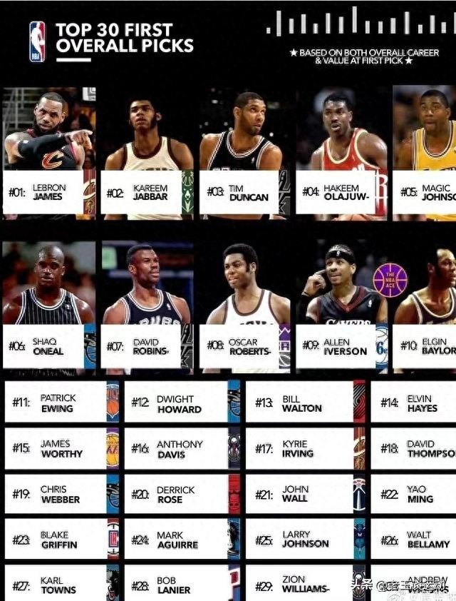 美媒重新评选NBA30位状元,詹姆斯历史第一、第二名实至名归