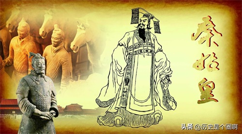 前221年,嬴政自诩“德兼三皇,功过五帝”,采用三皇之“皇”、五帝之“帝”构成“皇帝”称号,被称为“始皇帝”。政治上,嬴政在中央设置三公九卿,地方上废除分封制,代以郡县制;经济上,统一货币和度量衡;社会文化上,实施书同文,车同轨的政策,以首都咸阳为中心修筑通往各地的道路,规定以法为教,以吏为师;军事上,北击匈奴,收取河南地,修筑万里长城;南征百越,修筑灵渠,沟通长江和珠江水系,前210年,嬴政驾崩于沙丘平台,享年五十岁,葬于骊山秦始皇陵。死后由胡亥继位,翌年就爆发了埋葬秦朝的秦末农民战争。