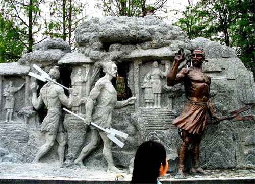 历史故事:相传,大禹在治水时,第一次经过家门时,听到他的妻子因分娩而在呻吟,还有婴儿的哇哇哭声,助手劝他进去看看,他怕耽误治水,没有进去;第二次经过家门时,他的儿子正在他妻子的怀中向他招着手,这正是工程紧张的时候,他只是挥手打了下招呼,就走过去了。第三次经过家门时,儿子已长到10多岁了,跑过来使劲把他往家里拉。大禹深情地抚摸着儿子的头,告诉他,水未治平,没空回家,又匆忙离开,没进家门。
