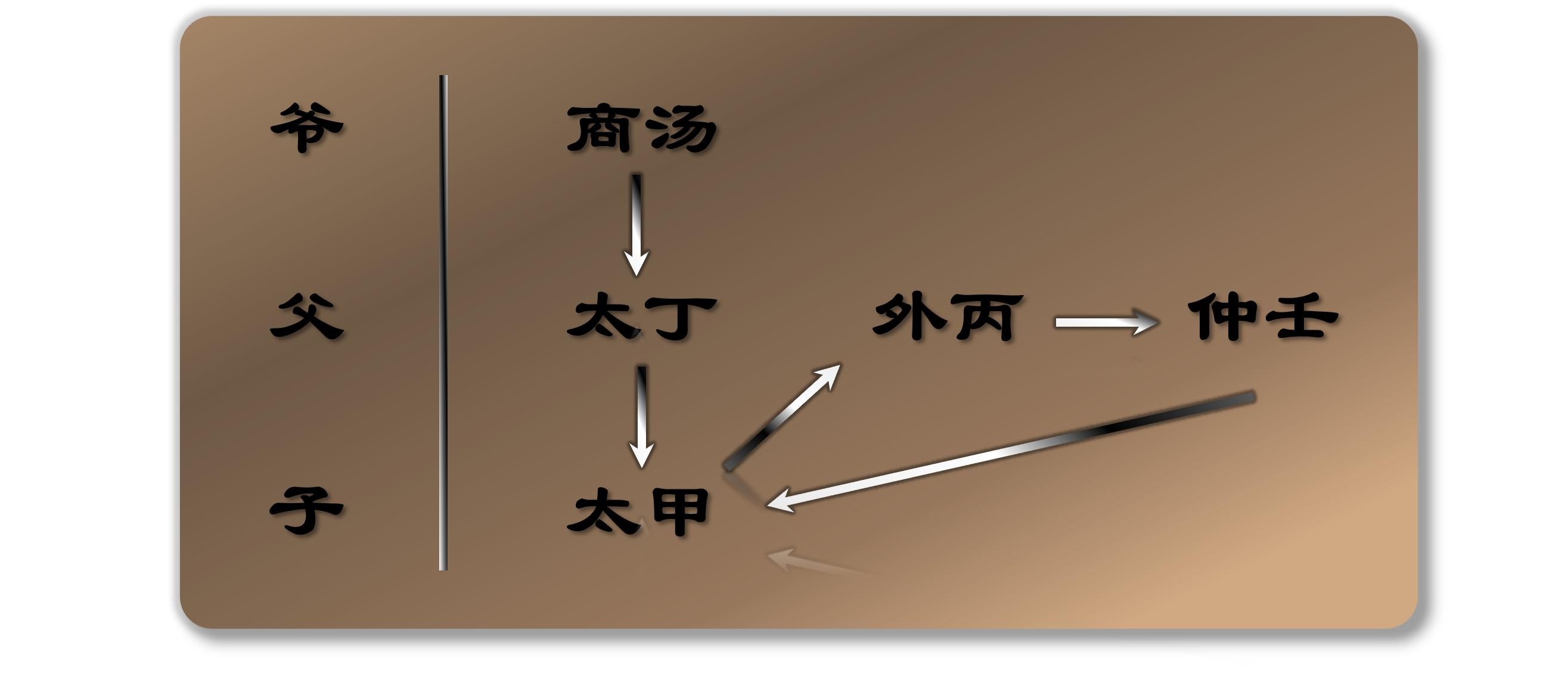 当商汤去世后,他原本的继承人太丁已经过世,太丁之子太甲德行不好,这导致继承线出现断裂。最终王位传给了太丁弟弟外丙。外丙在位仅三年就去世,接着由其弟仲壬继位。仲壬死后,王位再次回到太甲手中。
