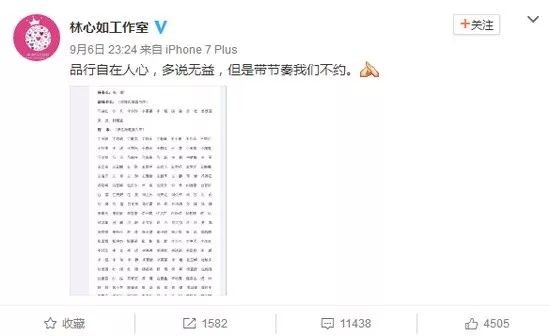 这件事情其实林心如只要就坡下驴,正面回应这事儿“”不是自己本意”,是“谣传越传越烈”、“媒体博人眼球”,自己表示“诚挚的道歉”,就算不能完全洗白,至少还算得体。