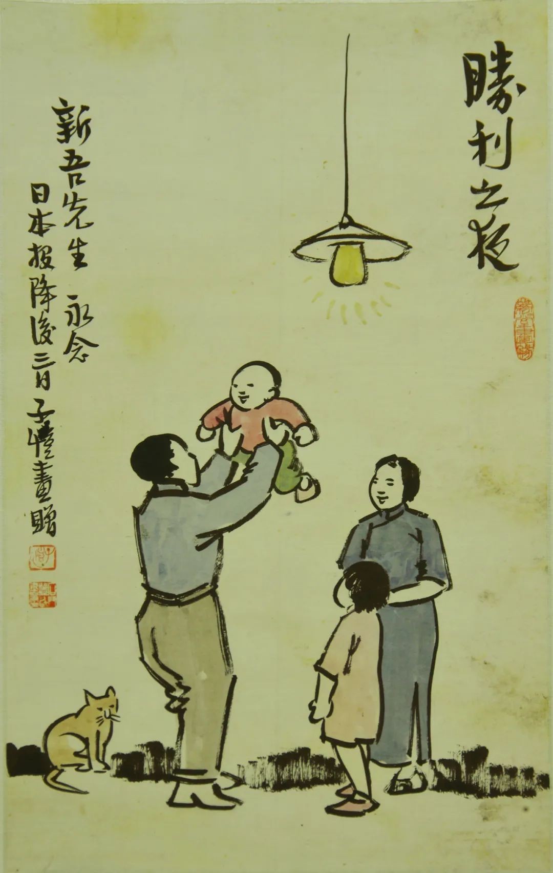 1945年8月18日,日本宣布投降后3天,著名漫画家丰子恺创作了这幅画《胜利之夜》。为上个世纪九十年代中期,樊建川馆长于北京嘉德拍卖所得。