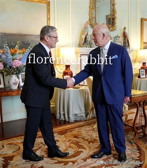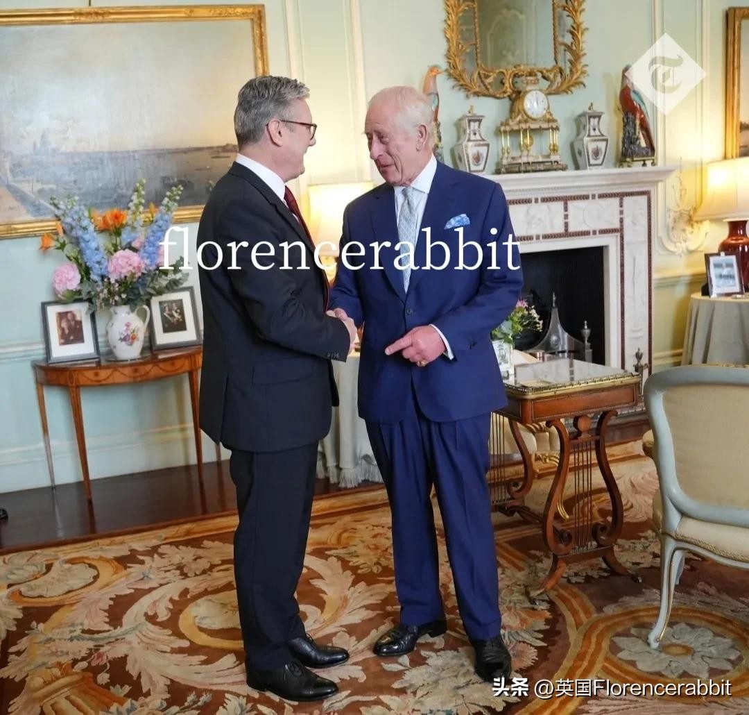 接班人走进白金汉宫参加“亲吻双手”仪式,尽管实际上并没有亲吻。斯塔默向国王鞠躬并与查尔斯握手,得到国王的允许组建政府。权力移交的那一刻,拍照留念!