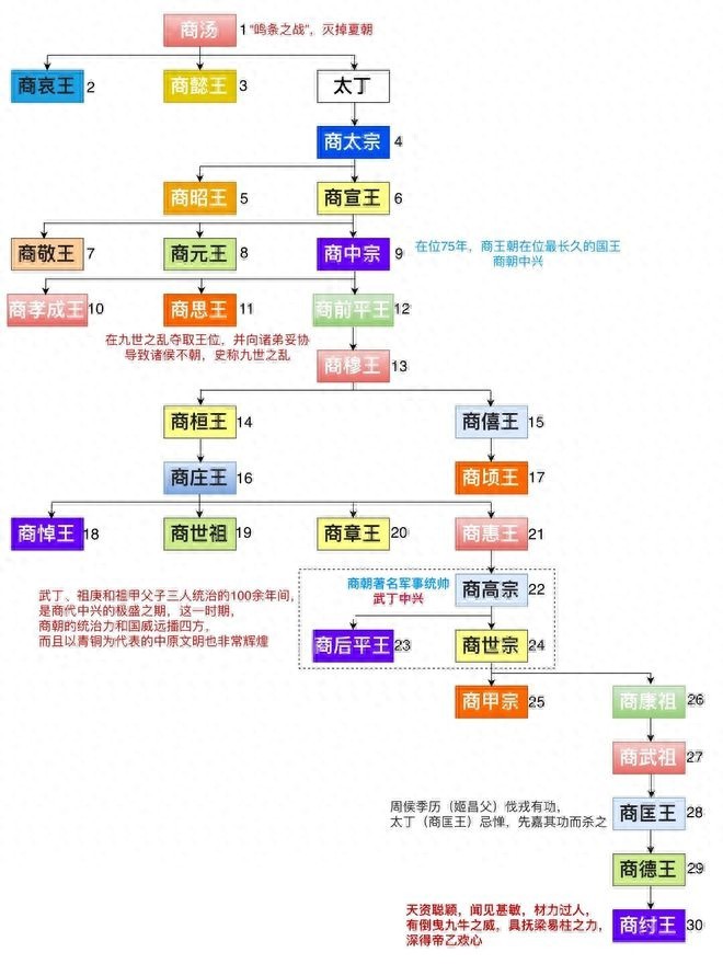 商朝(公元前1600年—公元前1046年),是中国历史上的第二个朝代,据说有17世30帝,延续了500多年。让我们一起来看看这些帝王吧!