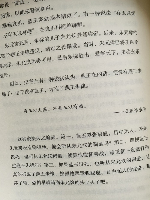 通过作者深入浅出地剖析,我们不仅对案件的来龙去脉有了更加全面地认知,并且对其中涉及的胡惟庸案的真正动机,空印案的发生时间,被杀被牵连的人数,一代名将蓝玉为何会落得如此下场等等历史谜团有了更加清晰地判断。