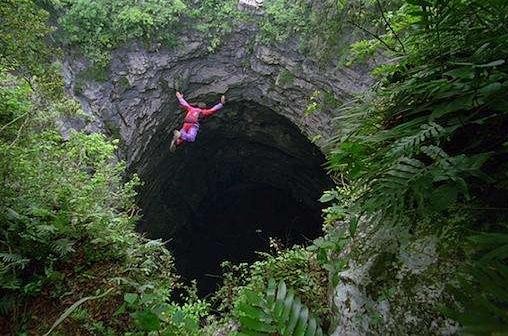 这位落在平台上的探险爱好者,要费很大力气靠着一根绳索爬出去,可是这个过程需要很长时间,与此同时这个探险爱好者还得忍受各种动物的气味影响,而后还是英国的广播公司在科学片《行星地球》中,拍摄了世界各地从没有人探索过的深邃洞穴,墨西哥的燕子洞才被证明,这个燕子洞大约426米,是世界上最深最大的洞穴之一。