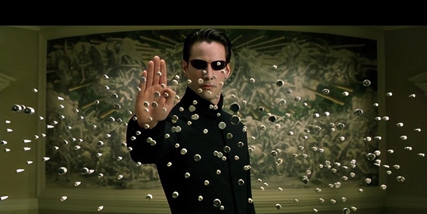 电影中“尼奥”被机器植入的虚拟程序“子弹时间”的设定,使得影片的动作战斗场面表现得更加绚丽和震撼。