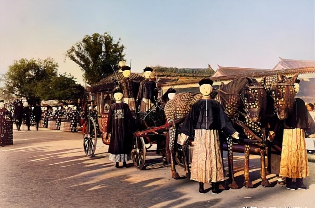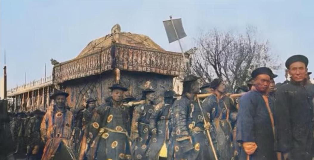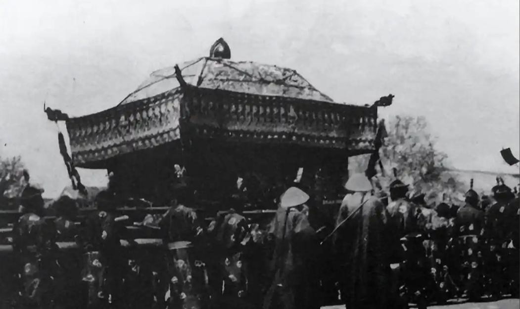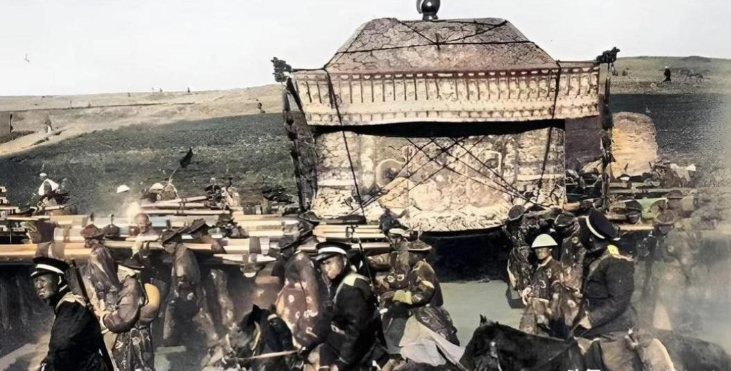 紧随其后的,是慈禧太后的灵柩,这具灵柩由珍贵的金丝楠木制成,木材坚硬而沉重,具有防腐的特性,能够让慈禧太后的遗体在漫长的旅程中保持完好。