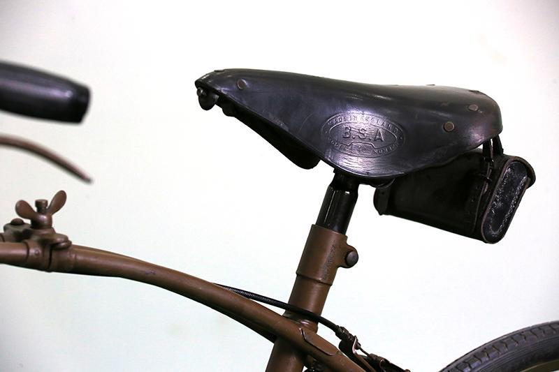 此车是BSA公司受英国王室授权,给英国军队生产的一款可以让伞兵随飞机一同空降自目标地的战斗用自行车,也叫空降自行车。当时三枪空降车被设计成可折叠形状,伞兵可以携带它着陆,准确地说,伞兵跳伞时,可以把车随身扔出,而车上有独立的滑翔伞。当然,伞兵也可以抱着跳下飞机。为世界上首款伞兵原装折叠自行车,成为当时二战时期英国伞兵的标准配置,所有配件均为原装,所有部件都有BSA标志,原装漆面和贴花。前后圈是原装战争级邓禄普的轮胎和车圈,后圈为原装漆面军绿色。