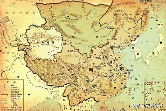 经过二十多年的经营,明朝疆域“东起朝鲜,西据吐蕃,南包安南,北距大碛,东西一万一千七百五十里,南北一万零九百四里”,国土总面积约达1000万平方公里。