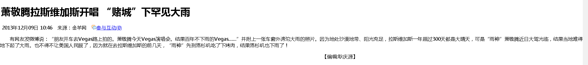 众所周知,拉斯维加斯位于沙漠边缘,常年干燥无雨,一年中高温的日子长达两百多天。没想到萧敬腾一去,直接就拉高了拉斯维加斯的全年降水量。