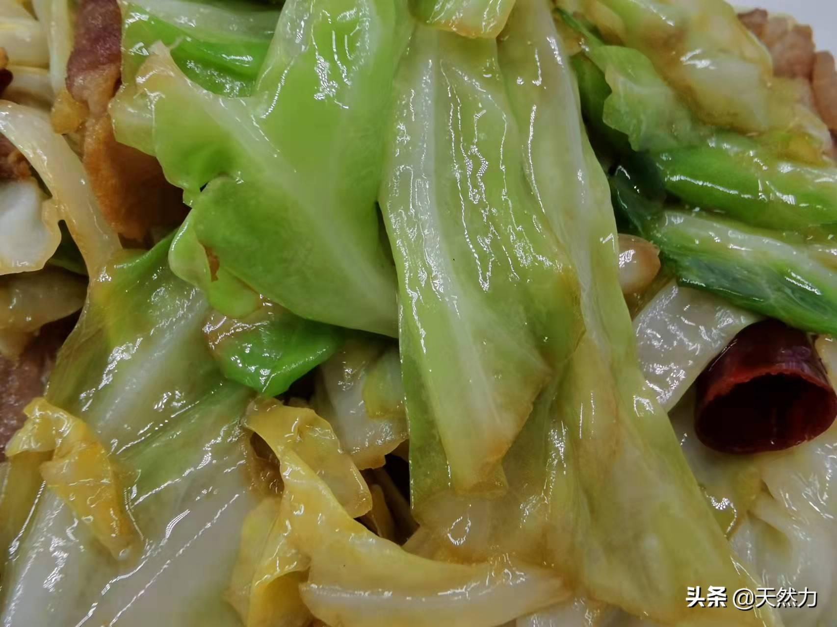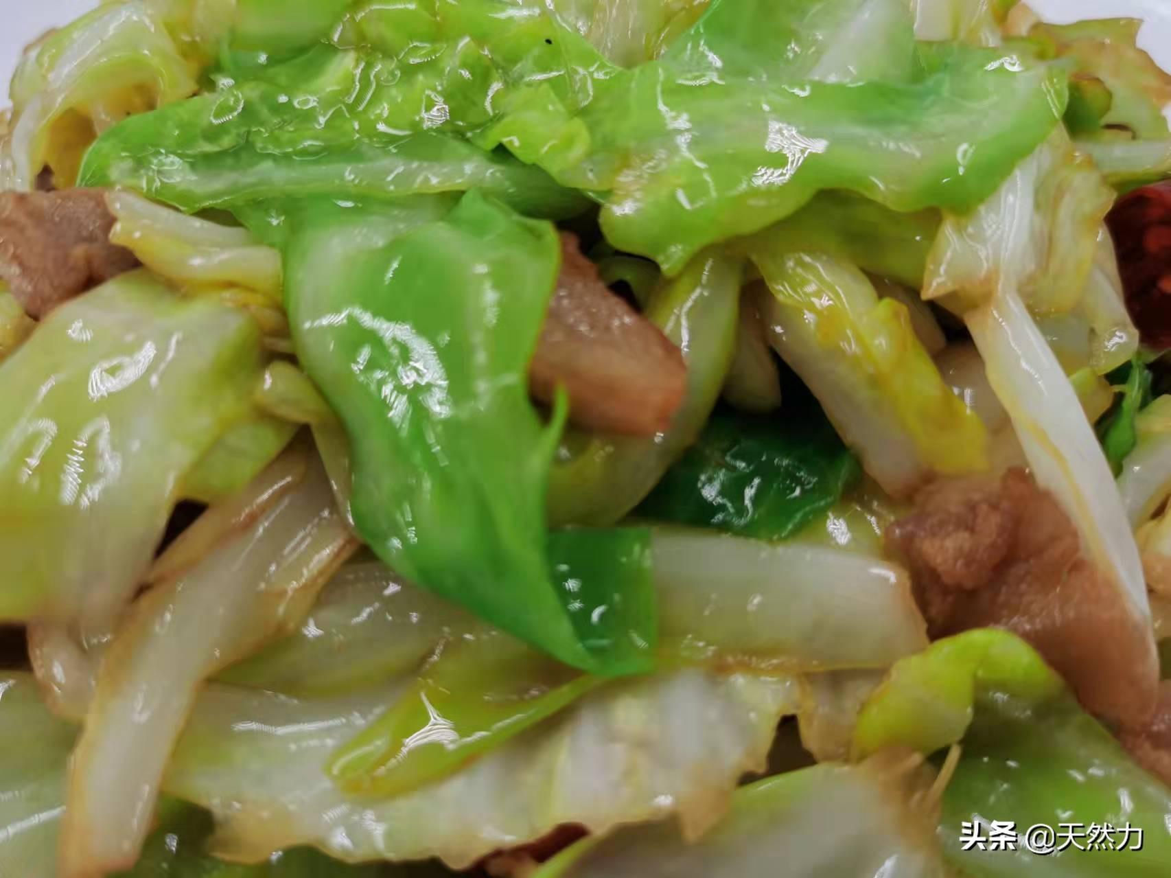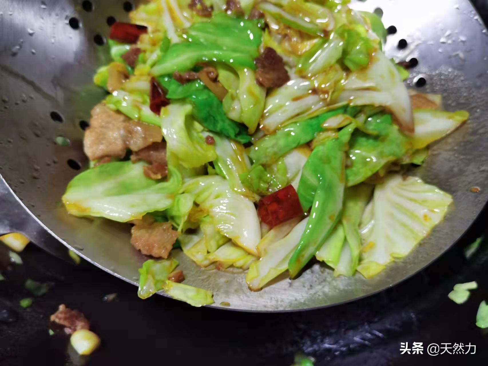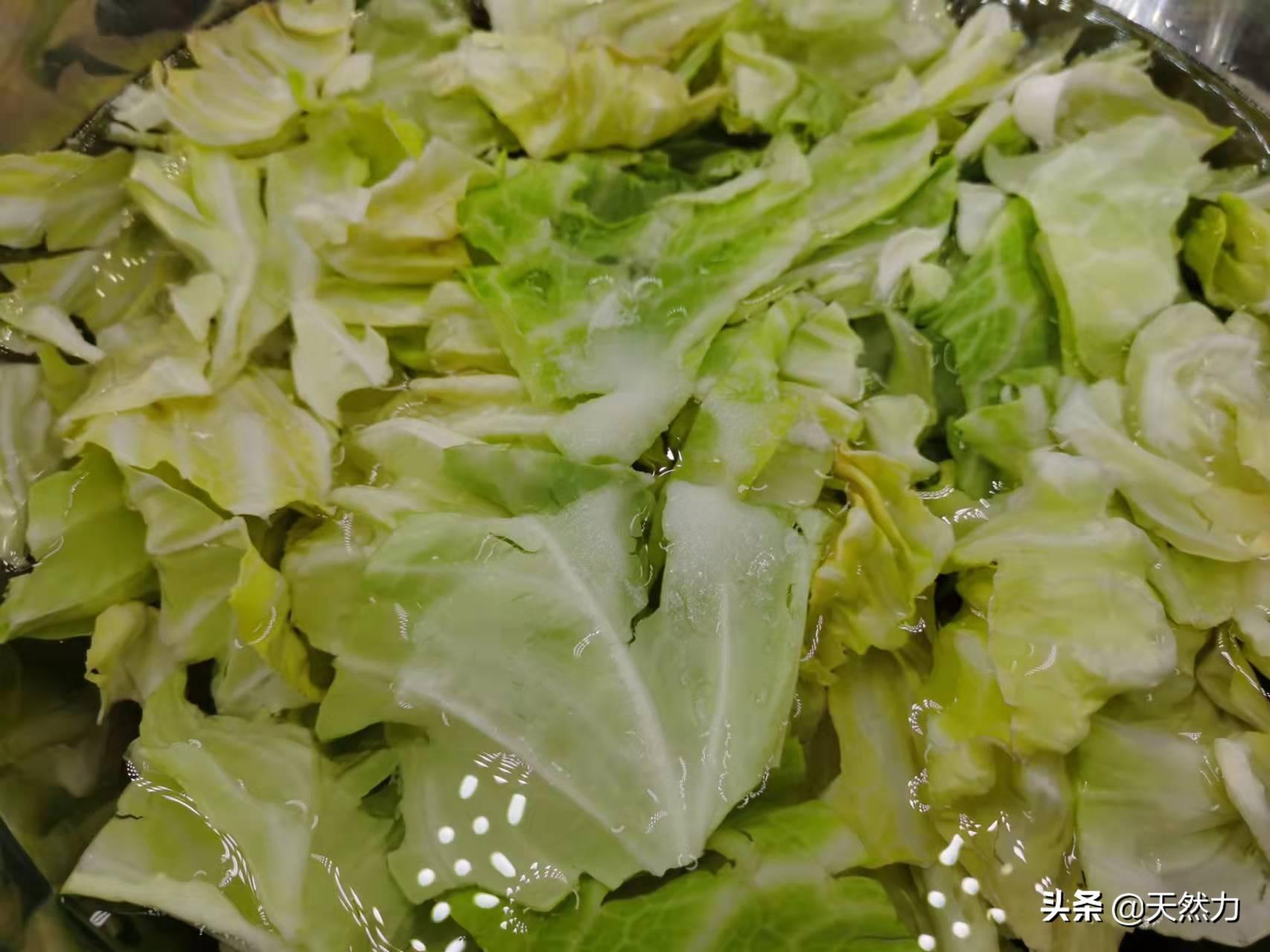 3、有的饭店在炒这个菜时会先把包菜过油,如果家里有这个条件,当然会更香,有的饭店会给包菜先焯水,而焯水的方法就不可取了,因为这是不专业的做法。