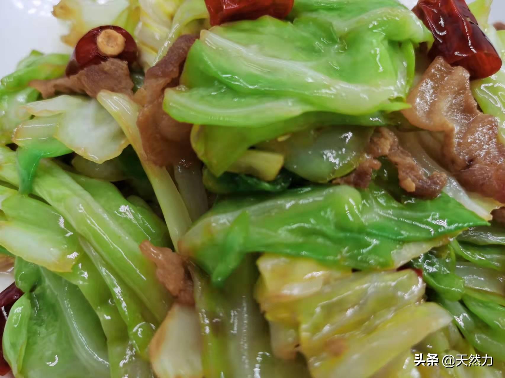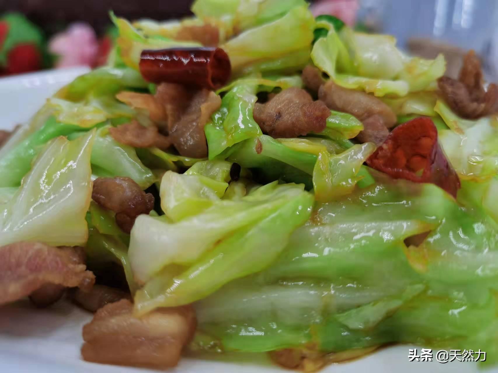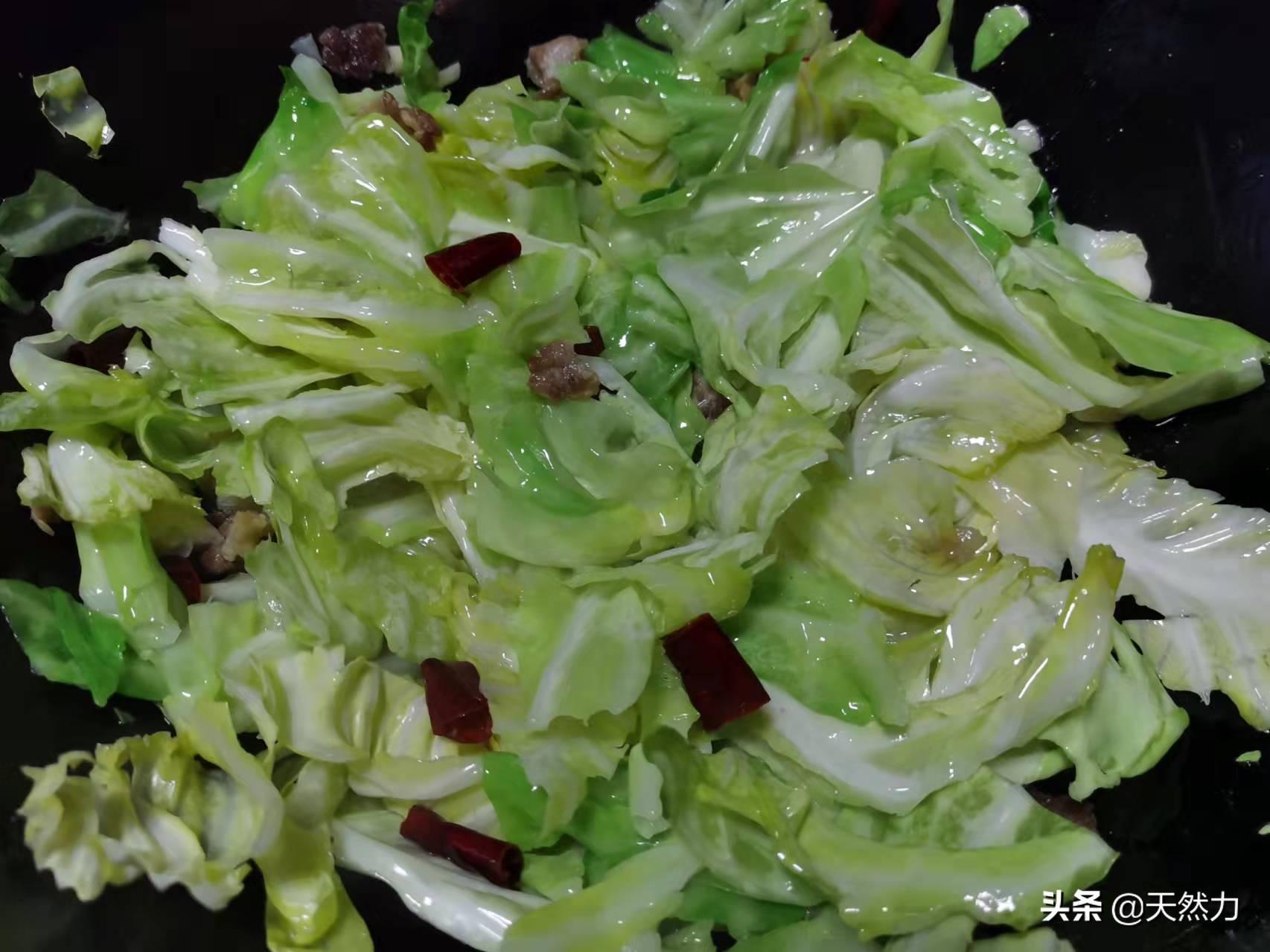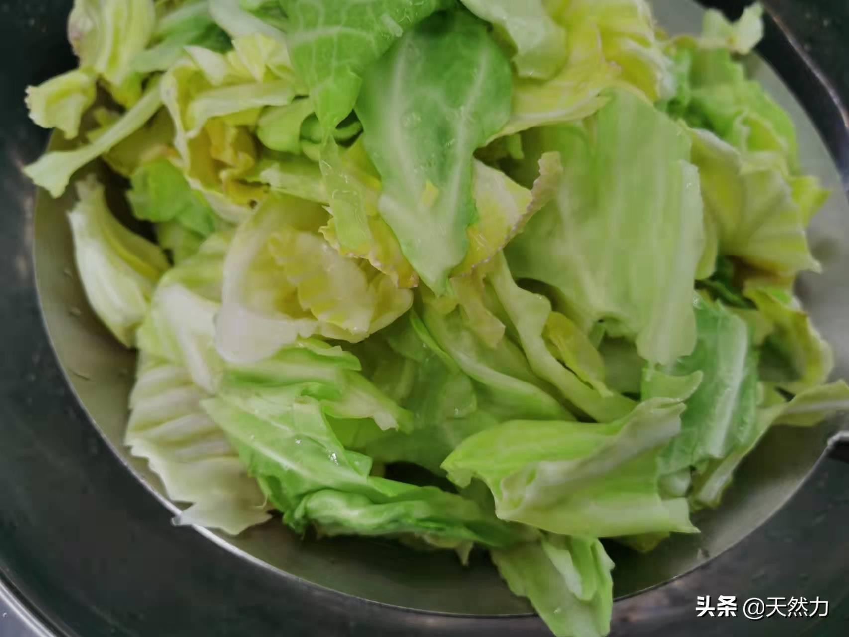 3、有的饭店在炒这个菜时会先把包菜过油,如果家里有这个条件,当然会更香,有的饭店会给包菜先焯水,而焯水的方法就不可取了,因为这是不专业的做法。