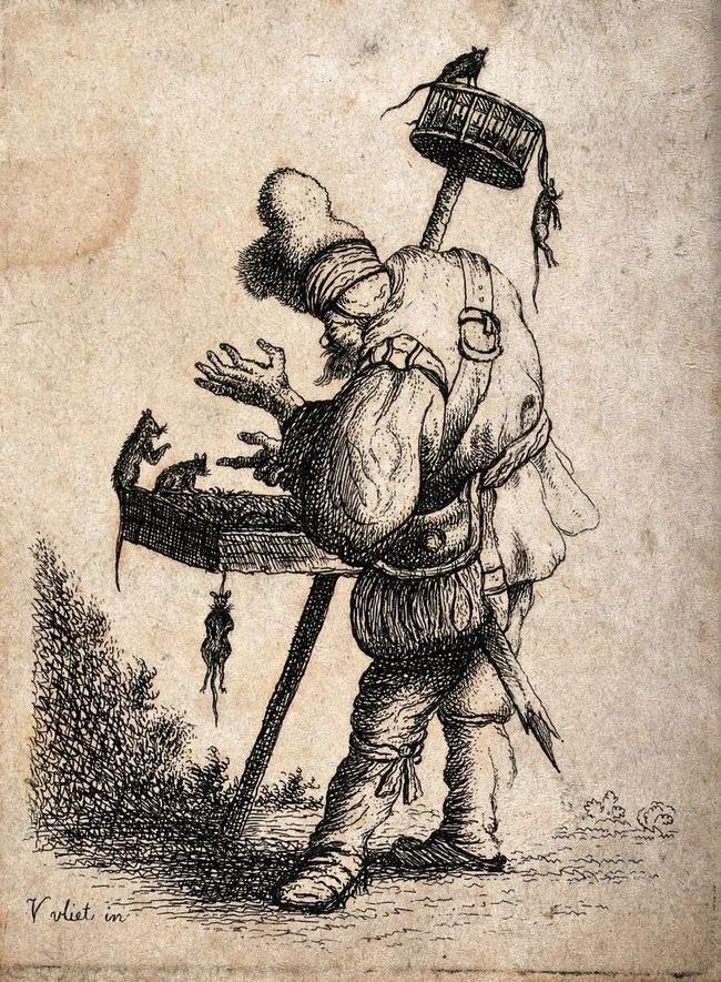 在奥地利,鼠疫流行的14~17世纪,捕鼠男也随处可见。一般来说,他们的特征是像流浪艺人一样从一个小镇到另一个小镇去驱鼠,不难想象,在魔女被认为是异端的那个时代,无论去到哪个小镇,捕鼠男都会被当作“拥有神秘能力的可疑的外来者”来对待。