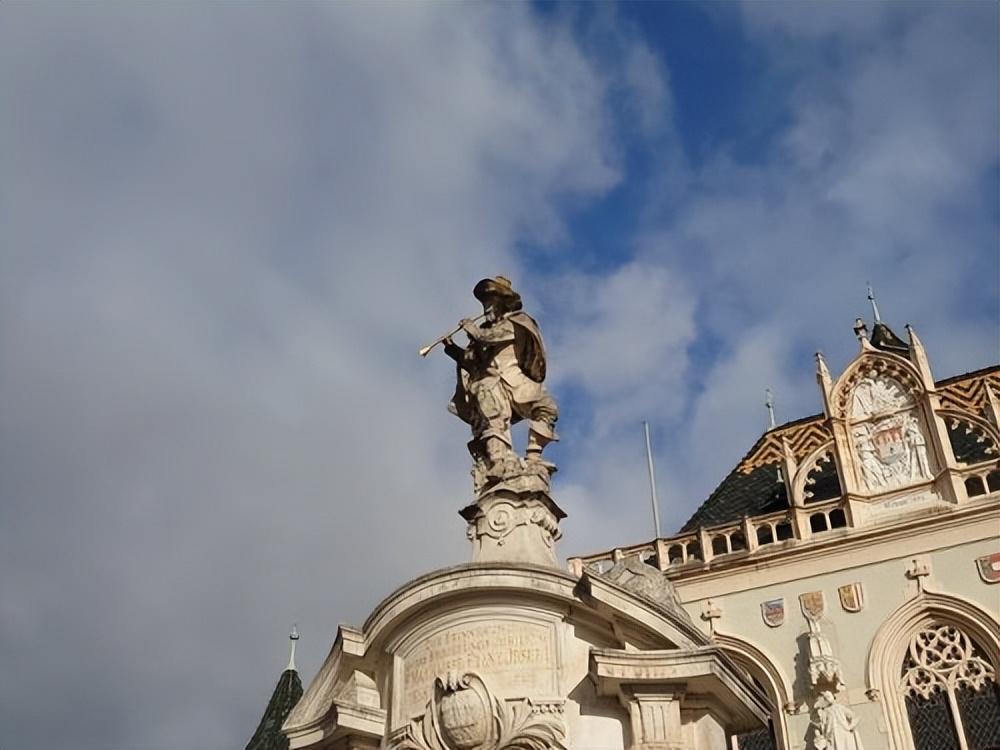 而另外一个就是被称为“科尔新堡的吹笛人”的雕像,它矗立在广场正中央的水井上,是科尔新堡全城最引人注目的地方。
