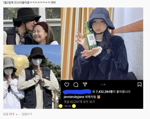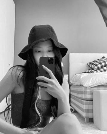 ▲Jennie、V济州岛之游,男方所有的帽子,Jennie早在1月的时候就戴着拍照过了。 (图/翻摄自pann)