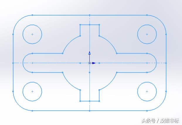 最后,给大家说几句绘图方面的知识,本实例是上下,左右完全对称的,也可以绘制四分之一草图然后通过镜像实体命令,同样可以绘制出垫板草图,还有大家还可以从内向外绘制,只要最终绘制出草图即可,不过实际工作中还是要根据设计意图绘制。