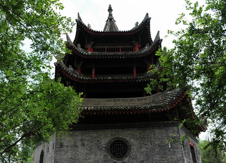 文峰木塔位于三原县城东南10华里的安乐乡中王堡,建于明万历三十四年(公元1606),是陕西唯一一座木质古塔。塔共三层,六角攒顶,四重檐,冀角高挑。塔高24米,坐落在4米高的砖砌塔基之上,塔台与北侧大殿之间有砖筑坡道相连。塔内设有扶梯,拾级而上可到二、三层。
