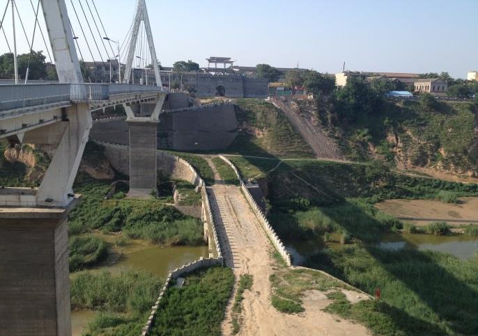 古龙桥始建于明万历十九年,横跨于三原南北两城间的清浴河河谷上,建筑设计采用三孔拱桥形式,桥长110米,宽11米,桥身用石条铁钳构成,桥面青石筑铺,两侧石雕栏杆,上刻人物花卉,桥体造型宏伟壮观,是陕西现存的一座古建石拱桥。