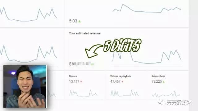 成名后RiceGum毫不忌讳地分享自己做视频的收入,把自己的YOUTUBE统计图发出来给大家看。一个月做视频点击量2000多万,收入超过6万美元。