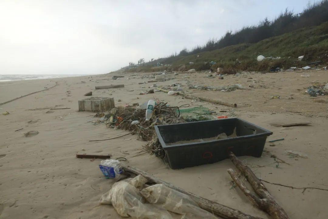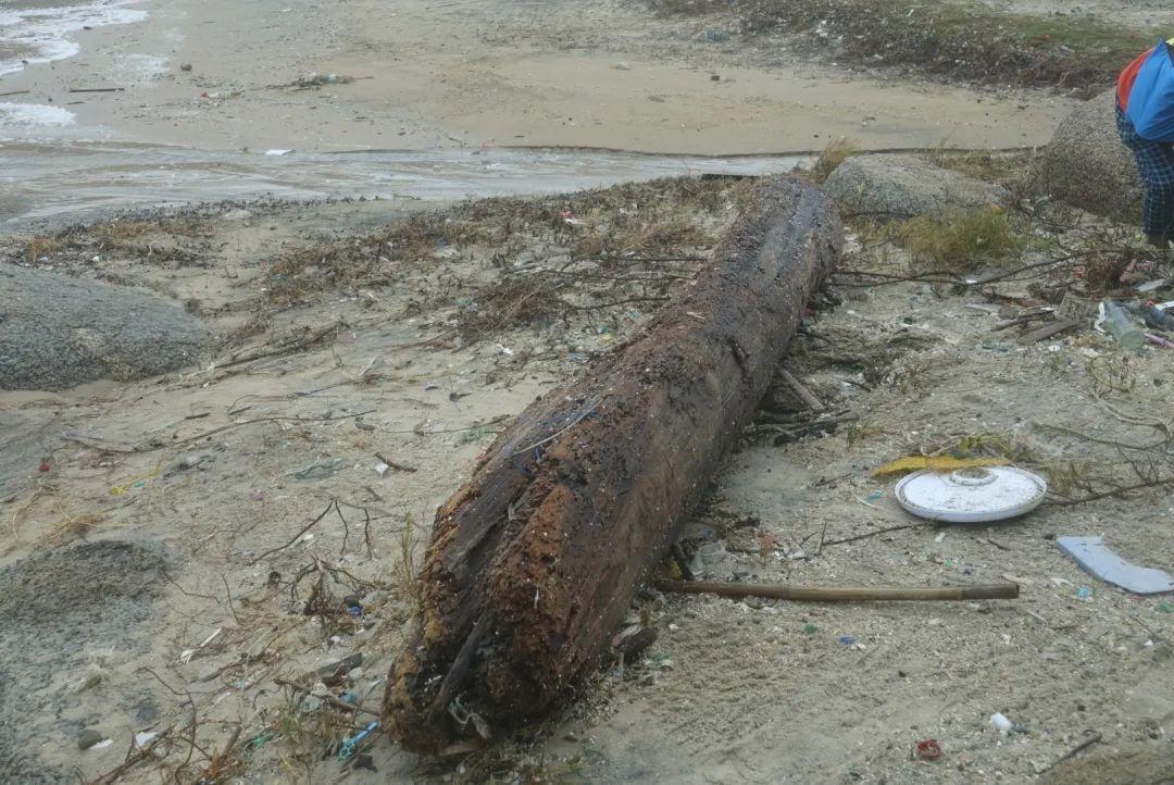 10月份以来台风频繁光顾的时段,我基本住在月亮湾,我常会跑到海边去作些观察,浩瀚南海一改风和日丽天气下的风平浪静,在台风天会非常咆哮,排山倒海的海浪向海岸扑来,原本11公里原生态月亮湾宽阔的沙滩几乎都被海水淹没,仅剩的狭窄的沙滩布满着海浪冲刷上来的垃圾,还有漂流木、死鱼等。我也曾见到,在台风大潮时,有附近村民在沙滩上拣拾整条整条的红双喜香烟,我很奇怪这红双喜香烟不知从何处而来。