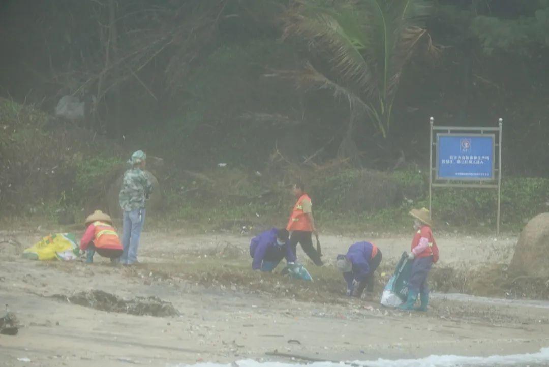 我比较感动的是,铜鼓佛光下的沙滩上,一群穿着“龙楼环卫”字样的工作人员,认真地捡拾垃圾清理沙滩,一担担地把垃圾挑离沙滩,让台风天沙滩也能保持洁净。这一点是非常值得文昌市其它沿海地区学习的,文昌市有270多公里海岸线,洁净沙滩应该得到各级政府的重视,让沙滩变得美丽整洁将推动文昌市的旅游强市。