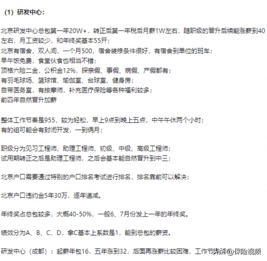 研发中心的工程师们在北京的起始总包达到20万元,而成都的起薪年包则是16万元。除了基本工资,员工还享有各种福利,包括住宿补贴、餐饮补贴,以及各类假期和保险。