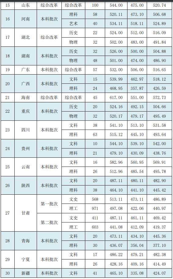 面向全国30个省(市、自治区)招生,其中理科招生省份30个,文科招生省份30个。2022 年,学校本科招生计划为6140人,实际录取考生6140人,实际报到5787人,实际录取率为 100%,实际报到率为94.25%。实际报到的招生人数中,普通本科生4889人,2021届预科生转段本科生160人,专科起点本科592人,少数民族预科生141人,第二学士学位5人。2022 年招生的第二学士学位实际录取120人,学生实际报到率较低,拉低了全校普通本科生整体报到率。录取人数中,甘肃省生源4587人,占录取人数的74.71%,其他省份生源1553人,占实际录取人数的25.29%。