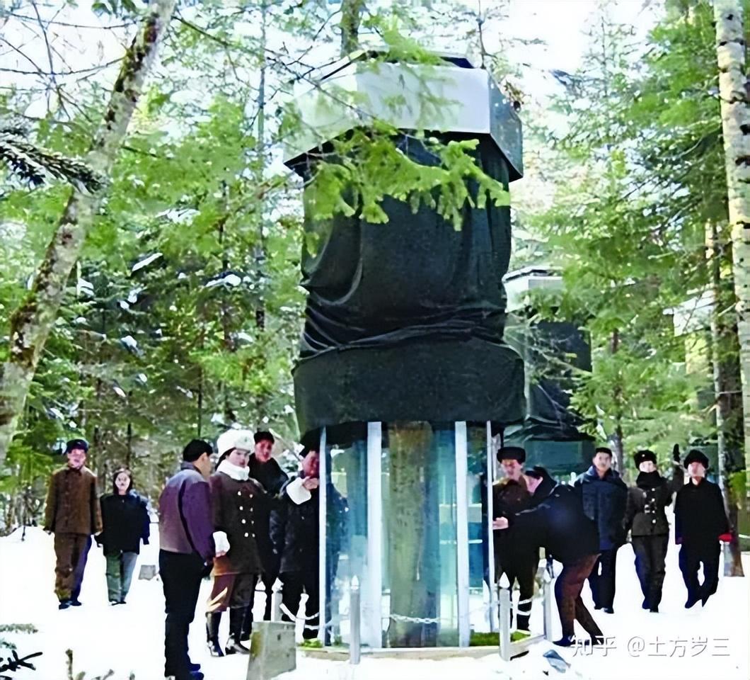 这种树是什么树呢?就是朝鲜的口号树,口号树据说是三十年代金成柱革命时,率领游击队转战朝鲜北方森林,游击队员剥下树皮用松汁写下口号的树,朝鲜境内有12000棵这样的口号树。而且这些树被朝鲜当成革命遗迹和圣物。甚至用玻璃罩仔细罩住树身保护。甚至有朝鲜女兵为了保护口号树不被森林大火烧毁抢救口号树而毁容。因此被评为革命英雄,特地送去中国最好的美容方面医院做整容手术。