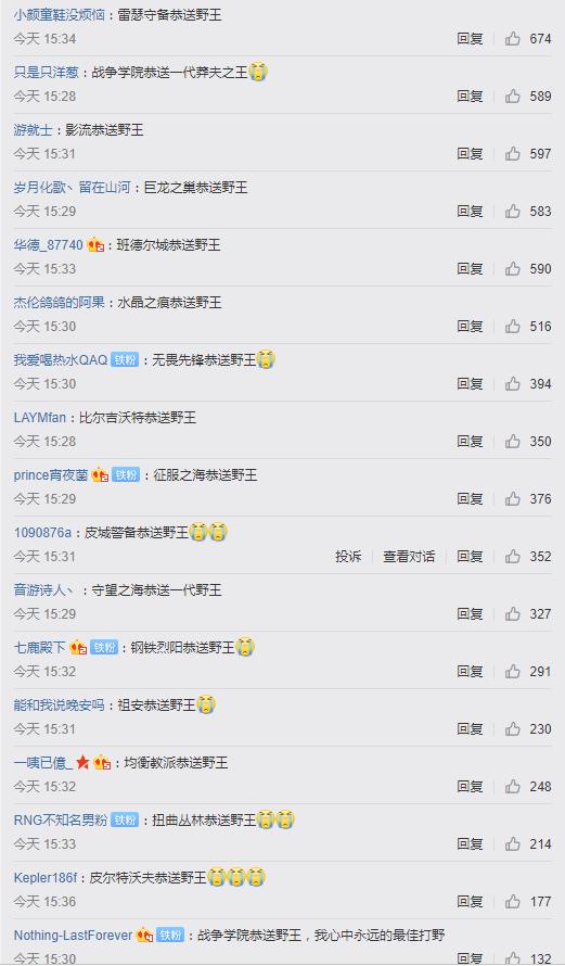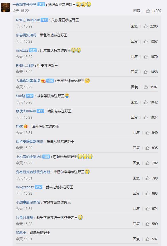 自RNG宣布香锅正式退役后评论区纷纷排队恭送野望。