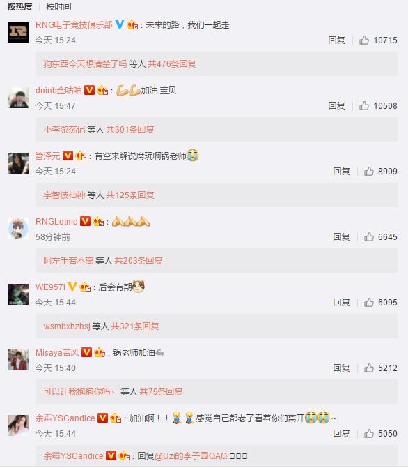 不仅如此麻辣香锅自己发的微博也纷纷送上祝福。这些都是香锅的队友和LOL的解说已经职业选手。