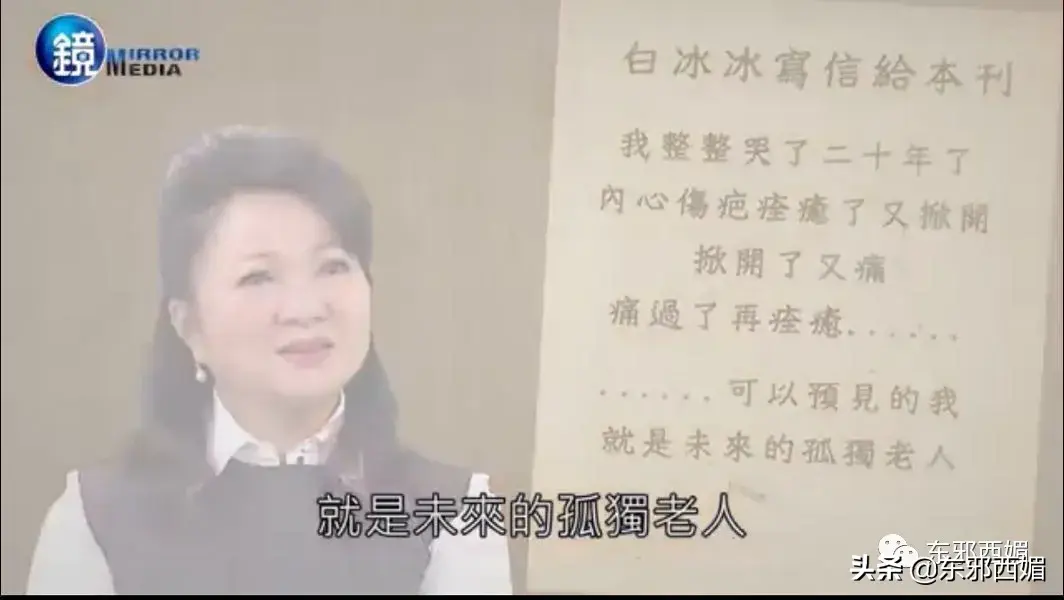 2017年,白晓燕离开了20年整,白冰冰在给某周刊的信里写道:“伤疤痊愈了又掀开,掀开了又痛。可以遇见的我,就是未来的孤独老人。”