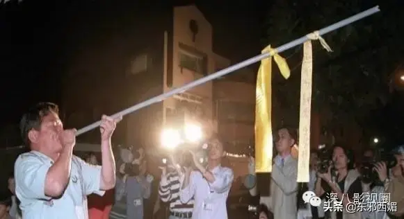 在证实白晓燕遇害后,白冰冰家前的民众拿起系着黄丝带的塑料水管吹起凄凉的「熄灯号」。