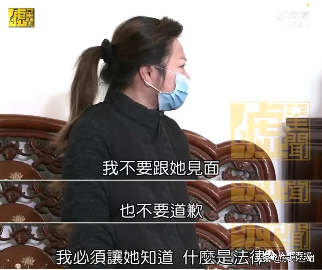 她在为女儿祭奠的小佛堂外举办了记者发布会,提起女儿两眼含泪,却还是坚定向所有人表态:“我不要跟她见面,也不要道歉,我必须让她知道什么是法律。”