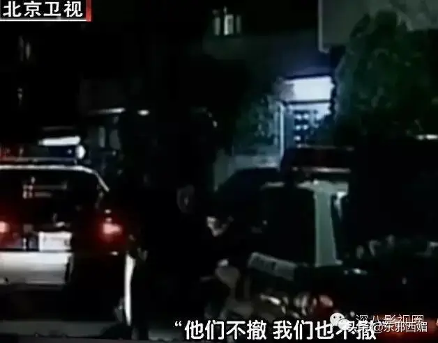 白冰冰在绑匪的要求下前去交付赎金时,电视台采访车却紧紧跟随在后面不肯离去,引得警方下车驱赶破口大骂。