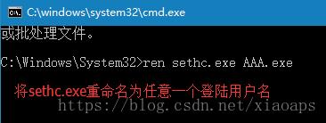 定位到cd C:Windows\System32,将cmd文件改成aaa,再将sethc文件改成cmd,改完重启