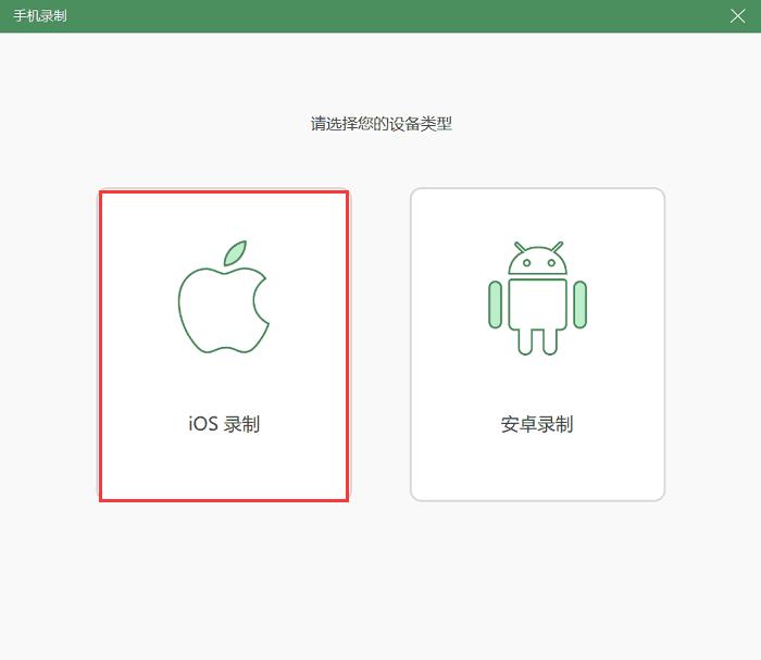 第2步:进入录手机模式,选择iOS录制,通过无线连接的方式把ipad投屏到电脑上,然后就可以开始录制了。