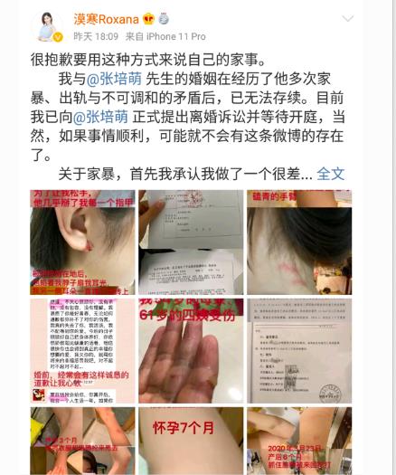 近日,短跑名将张培萌的妻子张漠寒@漠寒Roxana 发长文控诉丈夫家暴、出轨并抢走女儿,殴打其家人。一时间,“家暴”“离婚”“抚养权”等话题再次受到关注。哪些行为属于家暴,又该如何取证呢?