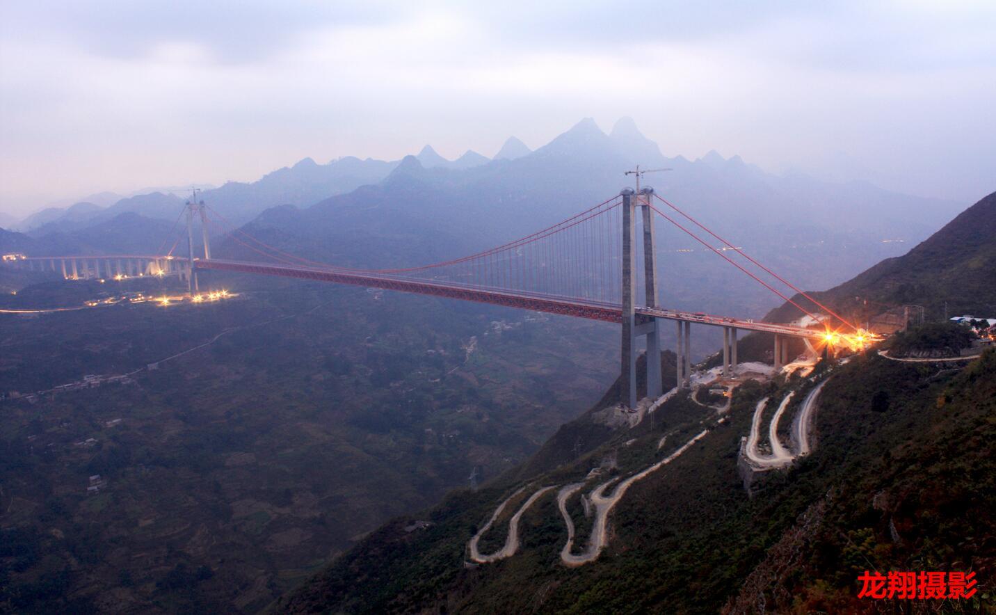 这是我利用了8年时间,在坝陵河大桥四周、上中下用照相机拍摄的一组多角度坝陵河大桥摄影作品。关岭坝陵河大桥全长2230米,高达370米,主跨1088米,是跨度“国内第一,世界第六”的大跨径钢桁梁悬索桥。 坝陵河大桥位于贵州黔西地区高原重丘区,是沪瑞国道主干线贵州境内镇宁到胜景关高速公路的控制性重点工程。坝陵河大桥东接壮美的黄果树大瀑布,西临三国索马古道,南毗神秘的红岩天书,北靠滴水滩瀑布,是关岭和黄果树风景区的标志,是一道举世瞩目的风景。 大桥的建成对于贵州、甚至中国的桥梁建设具有历史性的意义。