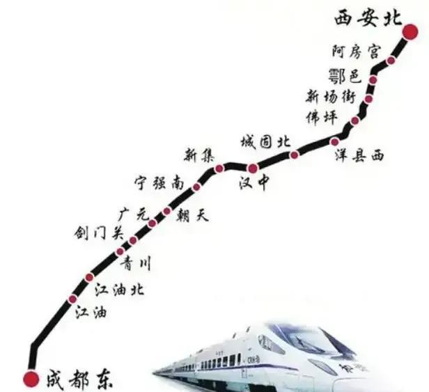 西成高铁从西安北站引出,向南经阿房宫、鄠邑、佛坪、洋县西、城固北、汉中、宁强南、朝天、广元、剑门关、青川、江油、绵阳、德阳,最终抵达成都东站。2017年12月6日,全线正式通车。西成高铁的建成使西安去成都更加的方便与快捷,也给两地带来了更多经济效益。从成都到西安的动车组最快3个小时,成都到北京7个多小时。西成高铁已安全运行5年了,西成高铁最初设计立项时速是350千米/每小时,由于当时受到全国高铁大降速的背景下,西成高铁被迫降成250千米/每小时,西成高铁是西安到成都最近的一条线路,随着时代的发展,西成线会不会改造提速,还是从新建一条西成二线,来弥补西成线的不足呀?欢迎大家评论!