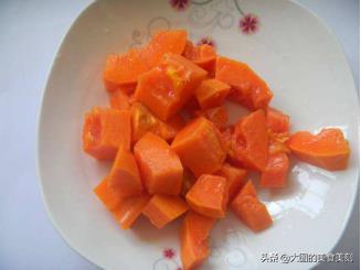 步骤1:将木瓜洗干净,将木瓜的果肉去皮切成小块