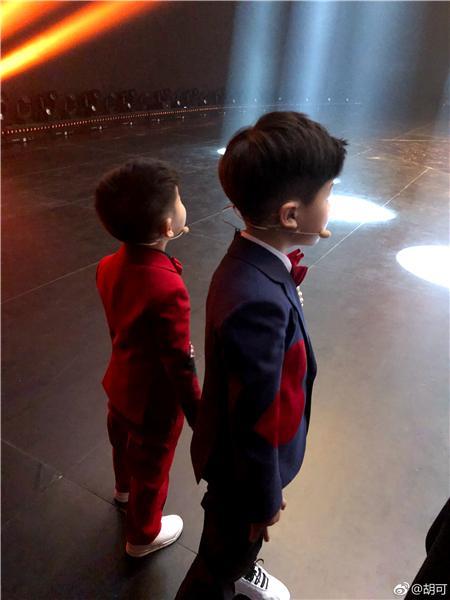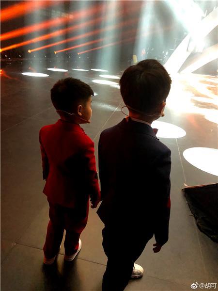 照片中,兄弟两背影出镜,安吉拉着小鱼儿的手静静地站在舞台边上等候上场,小小的的背影却给人满满的安全感,哥哥力MAX。