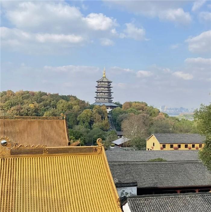 再登上大殿,便可以眺望雷峰塔和西湖,景色十分宜人。